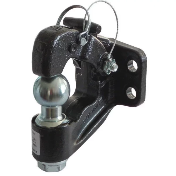 Système de verrouillage sécurisé pour maintenir la remorque ou la charge attelée en toute sécurité. Compatible avec différents types de remorques grâce à son crochet mixte. Les 4 trous avec entraxe standard permettent un montage rapide et sûr.