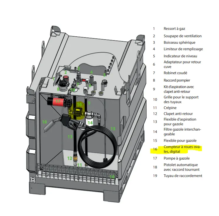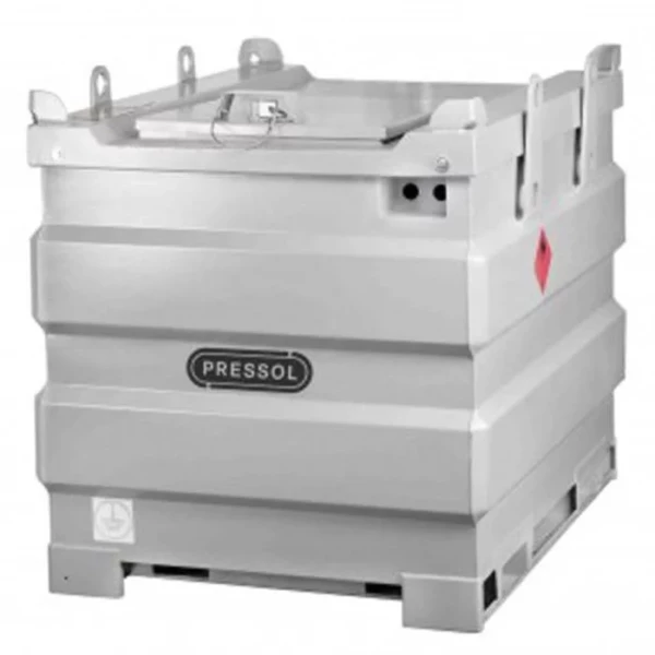 Citerne acier fioul domestique et gazole. Citerne transportable par chariot élévateur, même pleine. 3 entrées/sorties pour flexibles avec couvercle fermé. Certificat européen ADR pour le transport routier de produits dangereux.