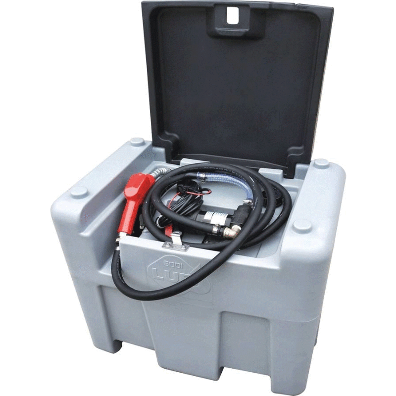 Cuve de ravitaillement gasoil 220 Litres. Cuve équipé d’une pompe 12V auto-amorçant, d’un pistolet à arrêt automatique avec raccord tournant, d’un tuyau d’aspiration avec crépine et d’une cuve empilable avec couvercle cadenassable.