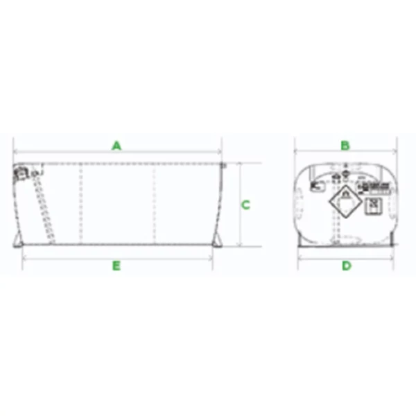 Cuve de ravitaillement en aluminium RENSON capacité de 250 L. Cette cuve peut être mise sur une remorque, sur un plateau ou dans un fourgon car elle répond à la réglementation des transport de matières dangereuses.