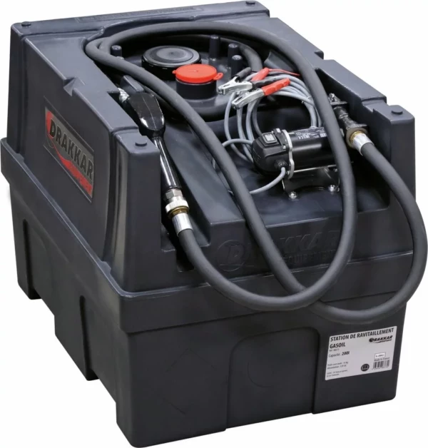 Cuve ravitaillement de gasoil ou fuel transportable DRAKKAR équipé d’une pompe électrique auto-amorçant.