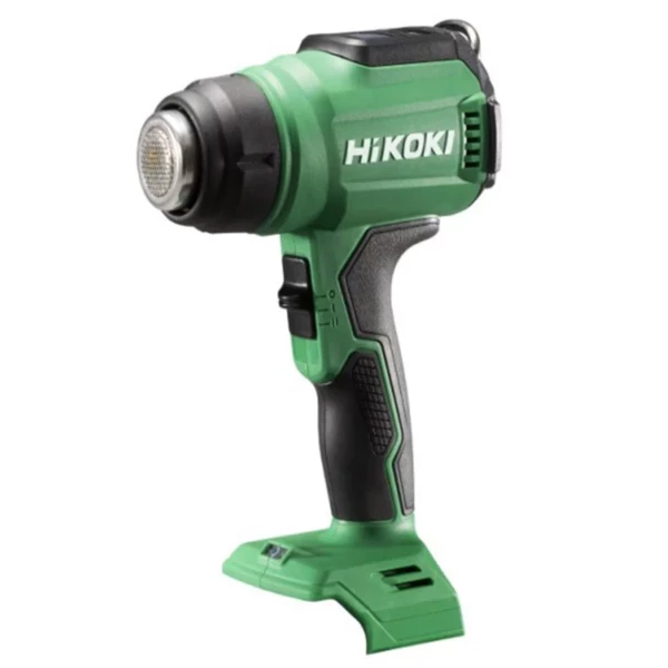 Décapeur thermique 18 V HIKOKI. Dispose d’un bouton de contrôle de la température qui peut être ajusté pour régler la température par augmentation de 10°C, de 30°C à 550°C. Équipé également d’un interrupteur de volume d’air deux positions et d’un affichage LCD. Livré sans batterie, ni chargeur.