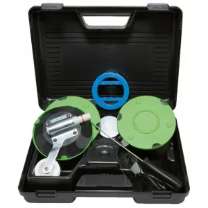Ce démonte pare-brises KSTOOLS® permet un usage à une main pour la dépose de tous les types de pare-brises et de vitres collées. Ce produit est recommandé par plusieurs constructeurs (Peugeot, Citroën, …). L’assortiment comprend des ventouses qui garantissent une bonne tenue de la vitre, même dans le cas d’une force de traction extrême (force de traction par assiette jusqu’à 110 kg). Les assiettes mobiles assurent également très bien la tenue de vitres fortement bombées. Livré dans une mallette avec 5 pièces. Garantie à vie ! (dans des conditions normales d’utilisation). Livré dans une malette de 5 pièces comprenant: • 1 x Câble avec ventouse unique • 1 x Poignée pour fil • 1 x Bobine de fil carré 0,4m2 longueur 50m • 1 x Tournevis d‘amorce – 340 mm • 1 x Lunette de protection grand champ de vision Poids: 5,450 kg