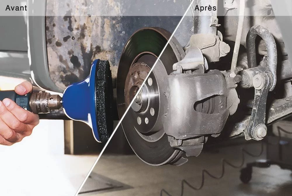 Ce kit comprend un support Velcro et trois disques décapants, conçu pour un nettoyage efficace des moyeux. Adapté pour des moyeux de diamètre 160 mm, il est idéal pour éliminer la rouille, les salissures et les résidus, assurant un entretien rapide et de qualité.