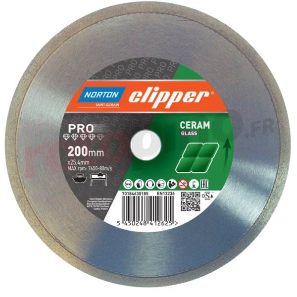 Disque diamant PRO CERAMIC Glass Ø200 x 25,4 mm NORTON CLIPPER