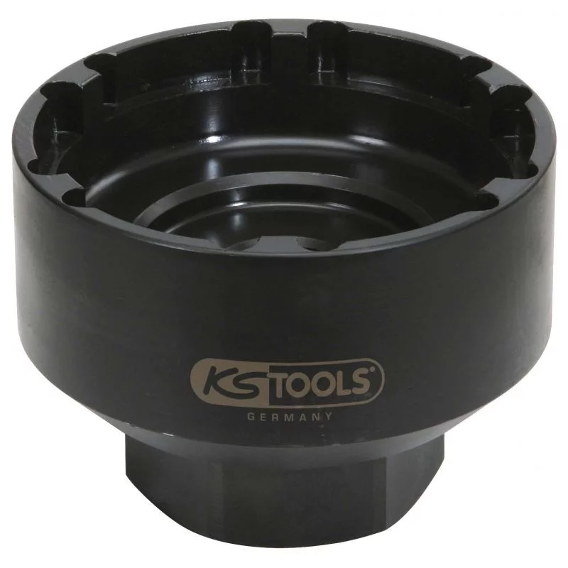 Grande exactitude Version renforçée Conçue pour de fort couple de serrage En Acier. Marque: KStools 6 dents intérieures diamètre 100.5 mm. Avec entraînement six pans Spécial Utilisations:  Essieu avant MAN-TGA, V9-82L-01(disque de frein/ABS)