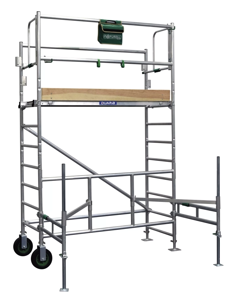 Echafaudage Roulant Naturoll DUARIB spécialement conçu pour répondre aux besoins des professionnels du paysage, des espaces verts et des collectivités. Sa conception unique, développée en collaboration avec la Mutualité Sociale Agricole (M.S.A.), garantit une sécurité optimale lors de l’entretien des haies, tout en offrant un confort de travail inégalé.