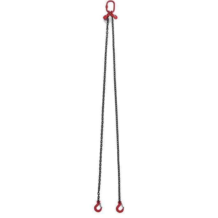 Elingue chaîne 2 brins avec crochet à linguet et raccourcisseur. Ajustable avec un crochet autobloquant. Livrée avec plaque d’identification.