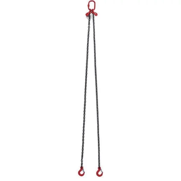 Elingue chaîne 2 brins avec crochet à linguet et raccourcisseur. Ajustable avec un crochet autobloquant. Chaine grade 80 cataphorèse. Livrée avec plaque d’identification.
