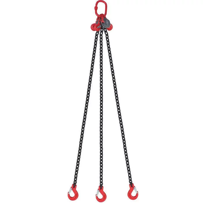 Elingue chaîne 3 brins avec crochet à linguet et raccourcisseur. Ajustable avec un crochet autobloquant. Chaine grade 80 cataphorèse. Livrée avec plaque d’identification.