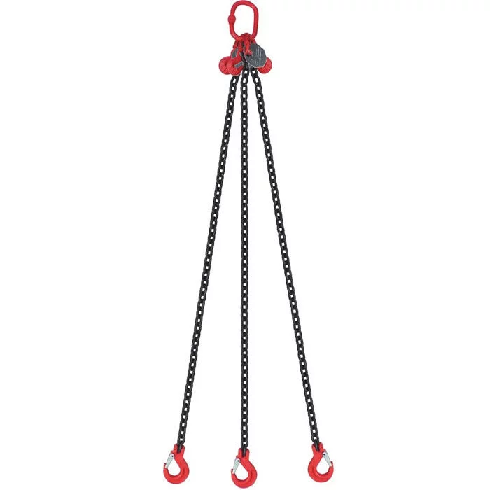 Elingue chaîne 3 brins avec crochet à linguet et raccourcisseur. Ajustable avec un crochet autobloquant. Chaine grade 80 cataphorèse. Livrée avec plaque d’identification.