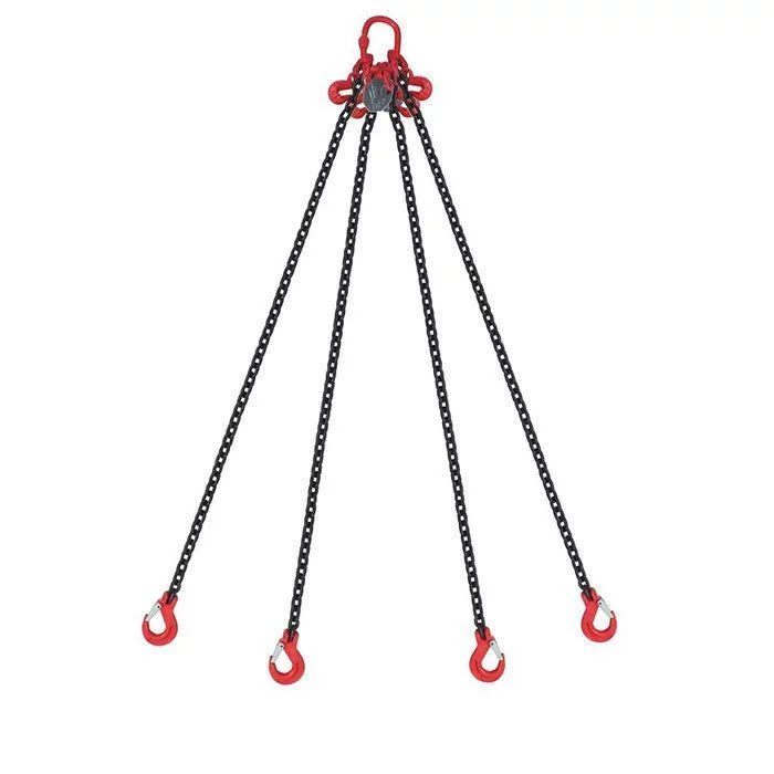 Elingue chaîne 4 brins avec crochet à linguet et raccourcisseur. Ajustable avec un crochet autobloquant. Livrée avec plaque d’identification.