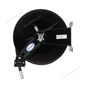 Système d’arrêt automatique : permet de bloquer le flexible à la dimension désirée. Ressort enrouleur automatique à force constante complètement protégé. Bras réglable afin de favoriser la sortie du flexible en fonction de l’installation de l’enrouleur. Rouleaux de guidage flexible auto-lubrifiant. Tampon bloque flexible réglable. Flexible de distribution caoutchouc haute pression ¼‘’ renforcé avec une tresse acier