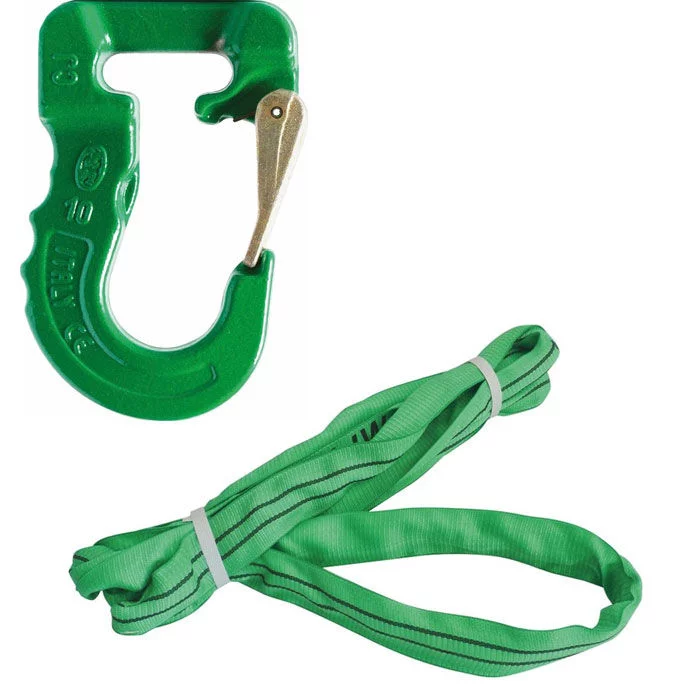 Ensemble crocher 2 tonnes pour élingue en textile, plus élingue de 2 tonnes, longueur 1 mètre en textile.