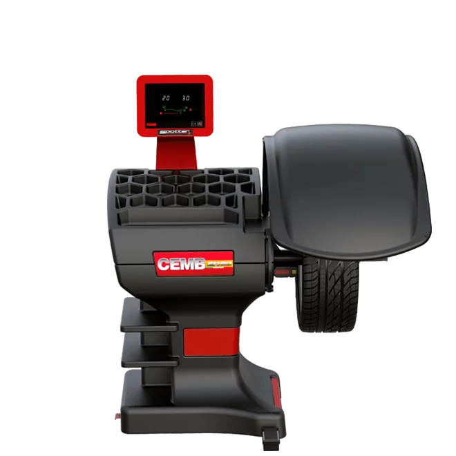 Équilibreuse digital avec moniteur tactile 3D, Mesures automatiques avec sonar. Écran tactile numérique pour un confort et une simplicité. Blocage de la roue pneumatique à commande de sécurité et frein électrique. Idéal pour garage, et centre de montage de pneus. Marque : CEMB Alimentation monophasé : 115 / 230 V 50/60 Puissance absorbée : 0.15Kw Vitesse d’équilibrage : 100 rpm Temps de cycle pour roue 15 Kg : 4.7 s Programme SPLIT Incertitude de mesure : 0.5 gr Bruit moyen < 70 dB(A) Largeur jante 1.5"÷20" / 40 ÷ 510 mm Diamètre jante : 10" ÷ 30" / 265 ÷ 765 mm Position des masses collées par point laser Air comprimé min./Max. : 8÷10 Kg/cm² ~ 0.8 ÷ 1 Mpa ~ 8 ÷ 10 Bar ~ 115 ÷ 145 Psi Poids de la machine < 75 Kg Dimension emballlage : 120 Kg Accessoires livrés avec l’équilibreuse (voir visuel plus haut): • 1 Pince pour masses + 1 masse étalon • 1 Compas de jante • 1 poignée de serrage rapide • 3 cônes de centrage Accessoires en option (voir plus haut): • Plateau universel pour jante sans trou central