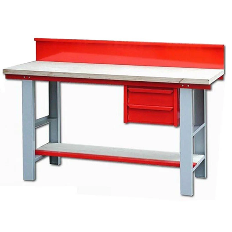 Établi de mécanicien très robuste et stable, établi doté d’un plateau bois multiplies de 30 millimètres d’épaisseur et de piètement métallique avec deux traverses de renfort.