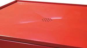 Établi métallique mobile DRAKKAR. Cet établi est équipé d’un plan de travail incurvé pour collecter les liquides. Livrée non montée.