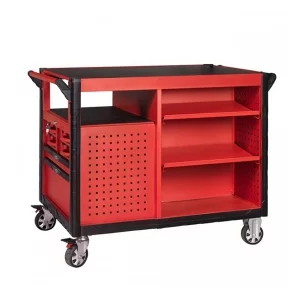 Etabli mobile Utlimate 14 tiroirs KS TOOLS. Cet établi dispose d’une ouverture individuelle et totale des tiroirs avec tapis en mousse. d’un plateau composite, d’un système de fermeture centralisée par serrure, d’une glissière à roulements à billes d’une perforations normalisée pour fixation d’accessoires, de 4 roues robuste dont 2 directionnelles avec freins et de 4 tiroirs avec valises de compartiments.