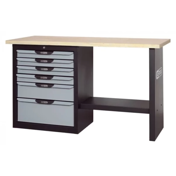 Établi professionnel d’atelier avec plateau en bois. Cette établi est composé de 6 tiroirs.