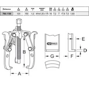 Extracteur à 2 et 3 griffes 6’’, les griffes sont utilisables des deux côtés, potence pour 2 ou 3 griffes. Capacité maximum : 150 mm, profondeur : 85 mm. Garantie à vie ! (dans des conditions normales d’utilisation). Extracteur universel à 2 et 3 griffes KS TOOLS Chrome vanadium de haute qualité. Capacité maximum : 150 mm Profondeur : 85 mm Force max. d‘extraction : 1,2 Tonnes Vis de force : écrous 13 mm, longueur : 175 mm Vis de force extrêmement robuste avec filetage durci Poids : 1,83 kg Attention : • Conserver la vis de force propre et graissée • Lors de sollicitation importante utiliser de la graisse spéciale filetage
