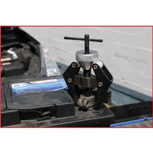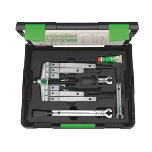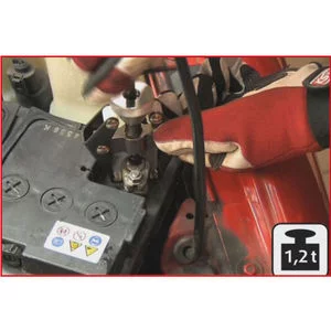 Idéalement adapté pour l’extraction de petites pièces. Poignée coulissante en T, griffes auto-serrantes. Vis de force avec filetage durci, pression max. t : 1,2 Attribut de fonction 1 : avec poignée coulissante Couple de serrage max Nm : 30 Nm Envergure A en mm : 15,0 mm Hauteur des pointes des griffes D : 2,5 mm Largeur des griffes G : 11,0 mm Matière : Acier Nombre de griffes : Avec 2 griffes Ouverture maximale : 45,0 mm Profondeur de prise B : 32,0 mm Profondeur de prise des griffes E : 9,0 mm Profondeur totale des griffes F : 10,5 mm Utilisation générale : pour batteries de démarrage 6 et 12 V Vis de force mm : M8 x 50 Poids : 0,3 kg