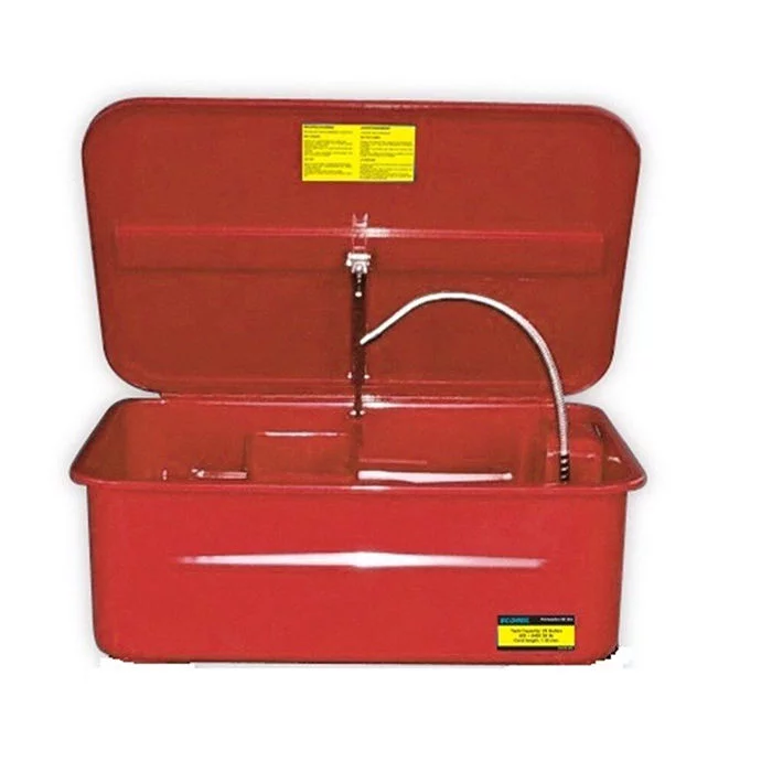 Fontaine de nettoyage pour pièces avec pompe électrique pour le nettoyage de pièces métalliques et plastiques salies par la graisse.