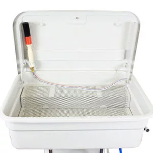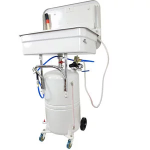 Fontaine de nettoyage et dégraissage pour les pièces Mécaniques, idéal pour laver les freins en place, le matériel de peinture dans un atelier. Cette fontaine de nettoyage fonctionne avec de l’air comprimé.
