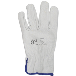 Gants Gants de maitrise tout cuir fleur de bovin.Renfort sur le pouce palmé,dos et poignet avec élastique. Utilisations :  en milieu sec ou légèrement humide présantant des sollicitations mécaniques dangereuses, gros travaux. Poids net:0,109 Unite poids:KG Taille:L(9) ou XL (10) Matière:cuir fleur de bovin Type:gants de maitrise Norme:EN 388 – EN 420 Poid article:0.109KG Poids brut:0,109 Picto produit:EN388_2143.eps