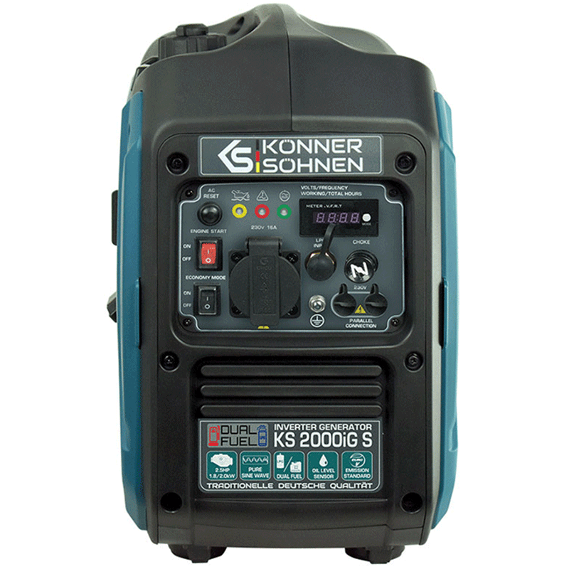 Groupe électrogène portable KS 2000iEG est une source pratique d’énergie électrique, possédant la régulation inverter électronique intégrée contrôlée par microprocesseur, assure le contrôle de fonctionnement du groupe électrogène et fournit une tension de sortie stable, de forme d’onde sinusoïdale 230V 50Hz, qui convient au fonctionnement fiable de l’électronique sensible. Le mode économique réduit la consommation de carburant jusqu’à 50% à faibles charges en ralentissant la vitesse de rotation du moteur. L’alternateur avec un enroulement en cuivre et le puissant moteur K&S garantissent une utilisation longue et répondent à toutes les normes de qualité européennes. La présence de l’écran LED permet un suivi optimal de l’état du générateur et de son travail et favorise les interventions de maintenance en cas de besoin.