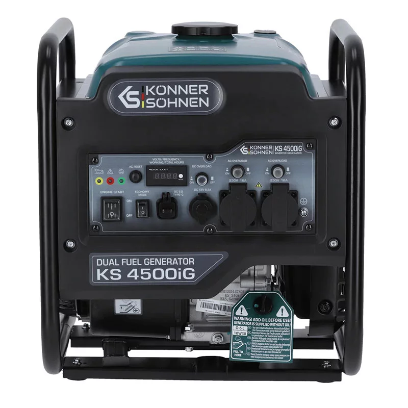 Générateur essence-gaz inverter 4.5 kW KONNER SOHNEN apporte une solution simple et efficace pour produire de l’électricité. D’abord, il garantit une alimentation stable. Ensuite, il protège vos appareils. Ainsi, vous travaillez en toute sérénité. De plus, sa technologie inverter améliore la qualité du courant. Donc, il convient aux équipements sensibles.