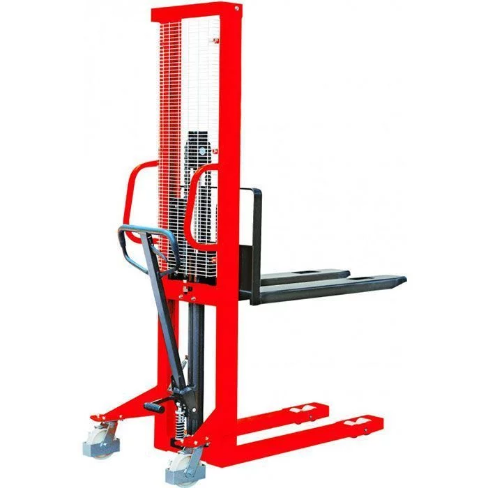 Gerbeur hydraulique 500kg DRAKKAR. Pour soulevé des palettes de 500kg plus facilement. Ce gerbeur est équipé de roues en nylon, de pédales de frein, d’une grille de protection.