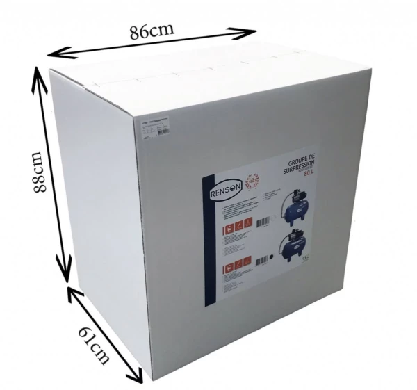 La marque RENSON conçoit ce modèle avec robustesse et fiabilité reconnues. Il est conçu avec des matériaux de qualité. Il résiste bien à l’usure et aux conditions difficiles. En outre, il est équipé d’un pressostat qui régule automatiquement la pression. Vous n’avez donc rien à faire : tout fonctionne tout seul. Groupe de surpression 80 litres pompe 1.1 kW RENSON