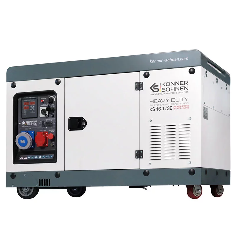 Le groupe électrogène diesel 20 kVA KÖNNER & SÖHNEN est une solution fiable pour tous vos besoins en électricité. Ainsi il fournit une puissance stable et continue, que ce soit sur un chantier, dans un atelier ou en cas de coupure de courant.