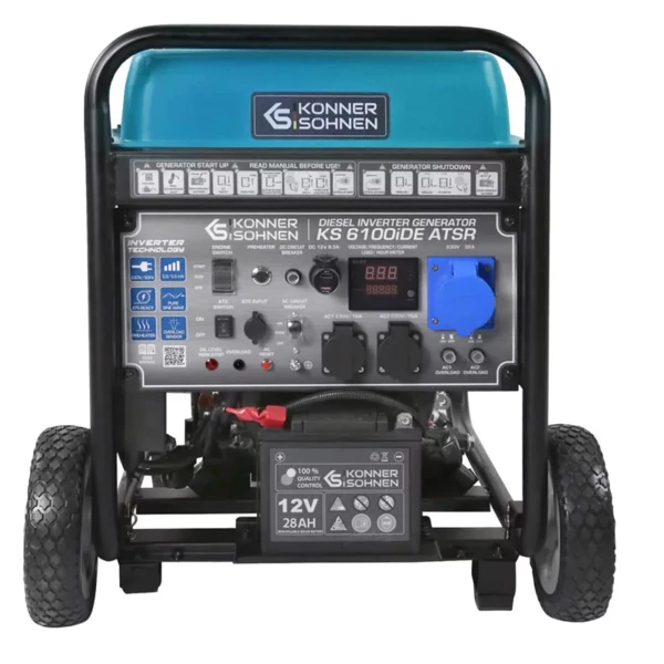 Groupe électrogène diesel 5.5 kW KÖNNER & SÖHNEN est une solution fiable pour produire de l’électricité partout, à tout moment. Il s’adresse aux utilisateurs exigeants, que ce soit à la maison, sur un chantier ou dans un atelier mobile. Robuste, il fonctionne au diesel, un carburant économique et facile à stocker.