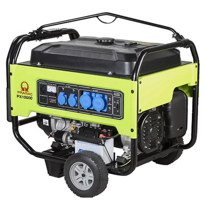 Groupe électrogène monophasé PRAMAC, Pratique, mobile et configuré avec un cadre solide et compact avec poignée et roues intégrées et point de levage central, ce groupe électrogène est facile à transporter pour aller là où le courant est nécessaire. Conçu pour une utilisation professionnelle.