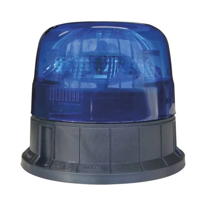 Gyrophare à LED flash bleu avec une fixation à plat  Diamètre : 146 mm Hauteur : 120 mm Poids : 50 g