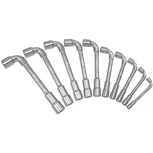 Jeu de 10 clés à pipe débouchées métriques 6 pans KSTOOLS®. Livré dans une boite. Garantie à vie ! (dans des conditions normales d’utilisations). Marque: KS TOOLS Jeu de 10 clés à pipe débouchées 6 Pans Ø : 8 – 10 – 11 – 12 – 13 – 14 –  16– 17 – 18 – 19 mm Tête coudée à 90° Finition chromée Chrome Vanadium Poids: 2.39 kg