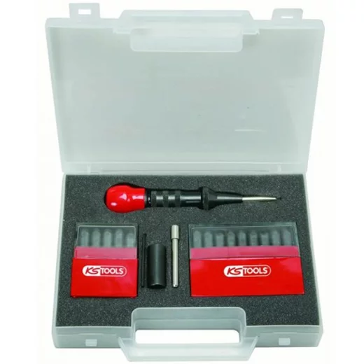 Composition d’outils de chiffres et de lettres à frapper pour inscriptions sur matériaux d’une durté jusqu’à 100 Kp/mm². Inscriptions selon DIN 1451. Corps carré 10×10 mm, Hauteur des lettres 5 mm, Gravage efficace, Coffret robuste en matière plastique. Garantie à vie ! (dans des conditions normales d’utilisations). 1 x Pointeau automatique avec adaptateur pour lettres et chiffres. 1 x Jeu de chiffres en boîte plastique, 10 pièces de0 à 9. 1 x Jeu de lettres en boîte plastique, 27 pièces de A à Z. 1 x Adaptateur 5 mm pour lettres et chiffres. 1 x Clé 6 pans mâle. Hauteur des lettres 5 mm. Corps carré 10×10 mm. Poids : 2,37 kg