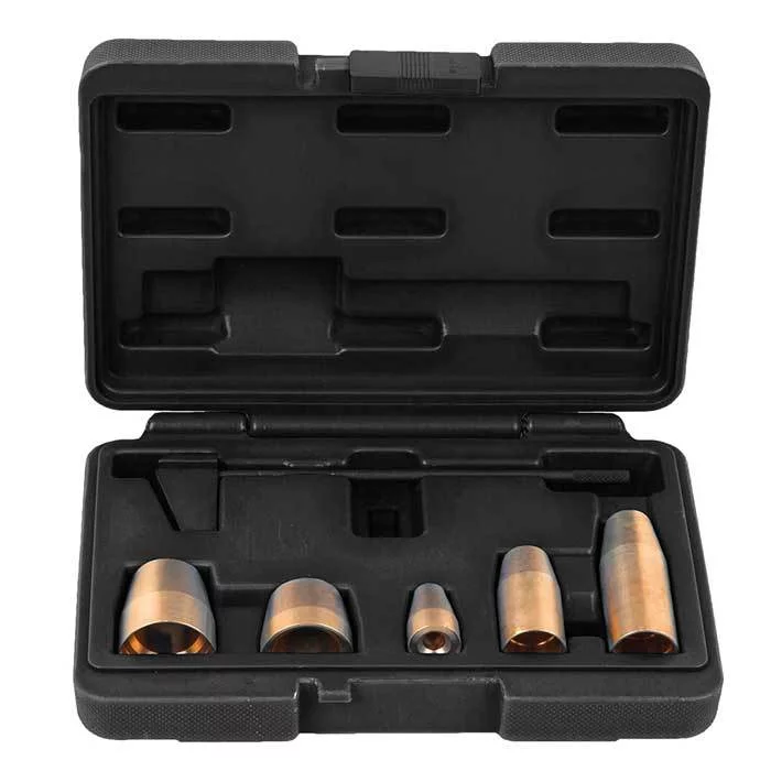 Jeu de douilles 6 pièces KSTOOLS. Pour le changement sans dégât des joints toriques de l’unité d’injection Positionnement précis de l’unité d’injection Coffret robuste en matière plastique Utilisations : Volkswagen Phaeton et Touareg >2003, T5 >2004 (moteurs diesel 5 + 10 cylindres), Touran >2004, Audi A3 >2004 (moteurs diesel 4 cylindres, 4 soupapes), Seat, Škoda, etc. X1 Gabarit de réglage, longueur 165,0 mm X1 Douille de montage Ø17,5 mm, longueur 28,9 mm X1 Douille de montage Ø21,6 mm, longueur 47,0 mm X1 Douille de montage Ø23,3 mm, longueur 67,2 mm X1 Douille de montage Ø31,0 mm, longueur 28,0 mm X1 Douille de montage Ø32,4 mm, longueur 40,3 mm Emballage: Valise en matière plastique, extra solide Pièces dans le set: 6 Poids: 0,1Kg