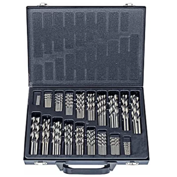 Jeu de forets à métaux HSS-S avec forets en spirale lissés dans une cassette solide. – Version: 170 pièces – Convient pour métal. – HSS-S – Type d’emballage Valise.
