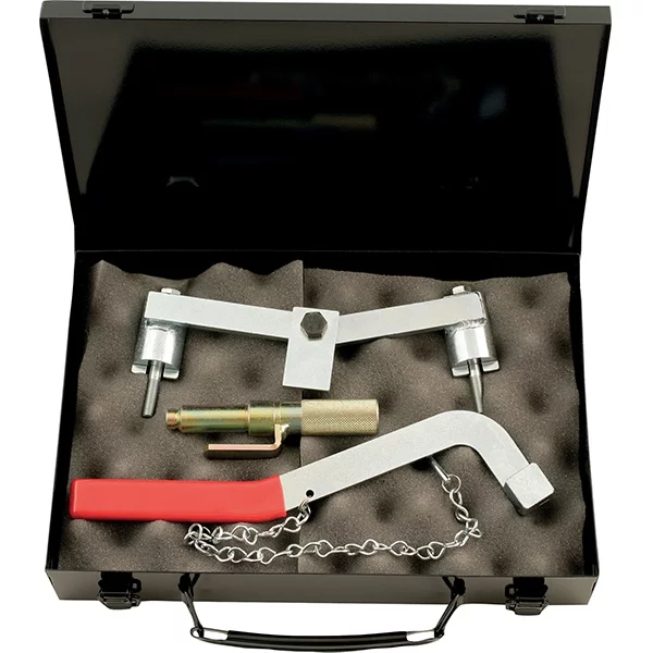 Outils pour le remplacement de la courroie de distribution. Livré en coffret de rangement. Utilisation : Renault laguna, Safrane, (code moteur : N7U/N7Q) Marque : KSTOOLS Coffret composé de : Cheville de fixation de vilebrequin Dispositif de réglage du tendeur Outil de fixation d’arbre à cames Poids : 1.41 Kg