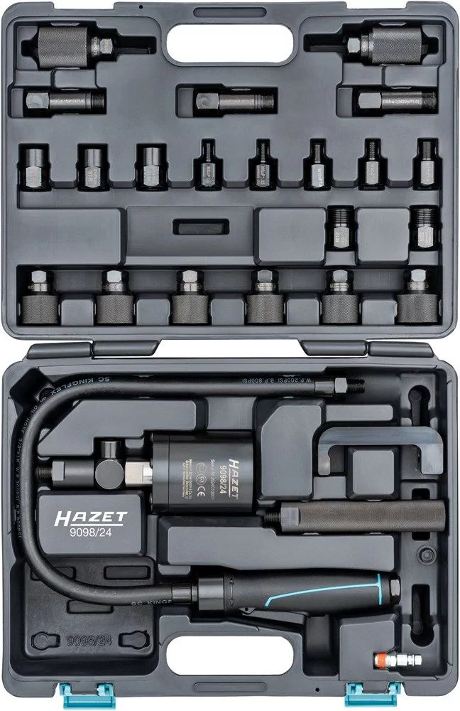 kit extracteur d’injecteur pneumatique 24 pcs HAZET est l’outil idéal pour un démontage facile des injecteurs, sans endommager la culasse ni les couvre-culbuteurs.