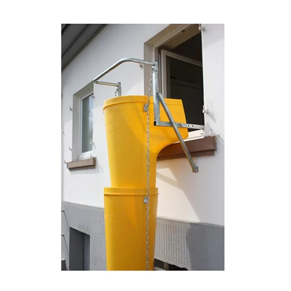 Kit de 8 goulottes à gravats + Trémie de chargement + 1 support fenêtre pour kits goulottes, fabriquées en France. Légère et maniable les goulottes sont facile à transporter et à mettre en place. Les goulottes sont équipées d’une pièce d’accrochage résistantes et et d’une gâchettes de sécurité exclusive Haemmerlin.