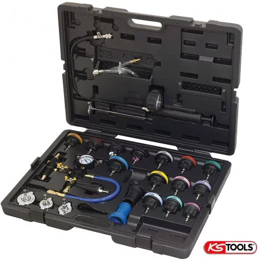 Le kit de diagnostic de système de refroidissement KSTOOLS permet de détecter rapidement les fuites et les problèmes de pression dans votre circuit de refroidissement. Il assure un contrôle précis pour éviter les surchauffes et prolonger la durée de vie du moteur.