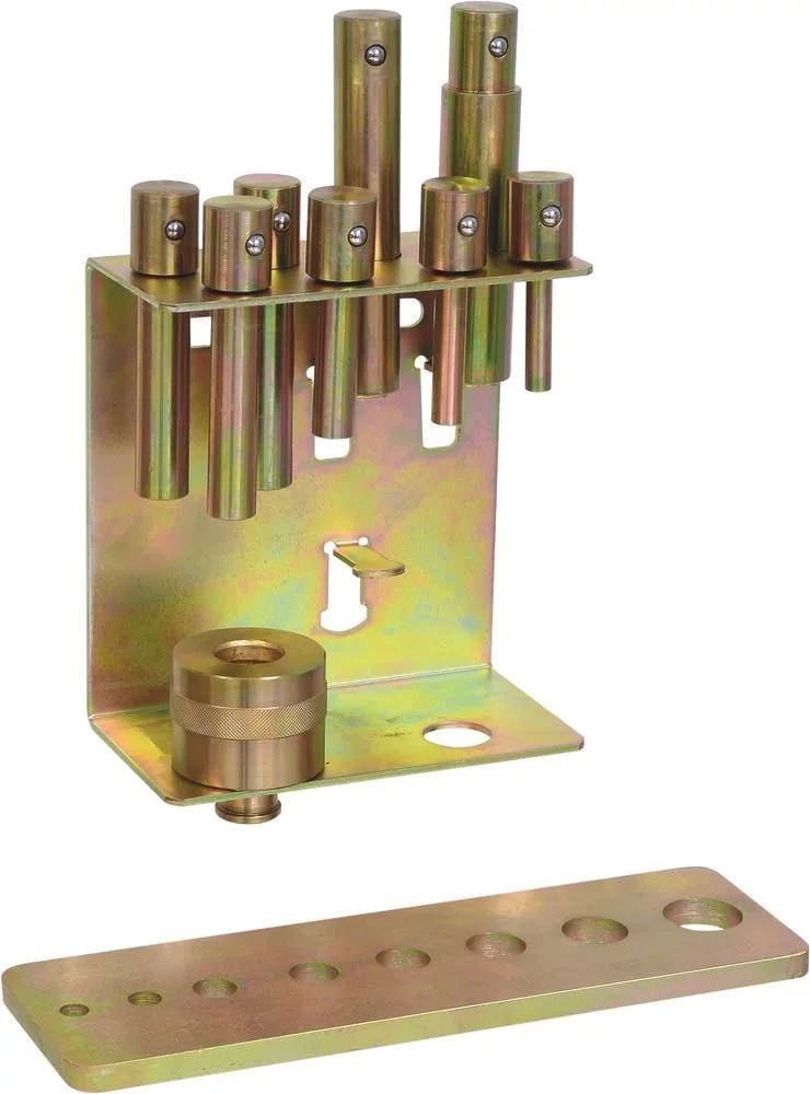 Kit poinçons pour presses hydrauliques j’jusqu’à 100 tonnes. Ensemble complet de poinçons, fixable directement sur la presse hydraulique grâce à son plateau de fixation.