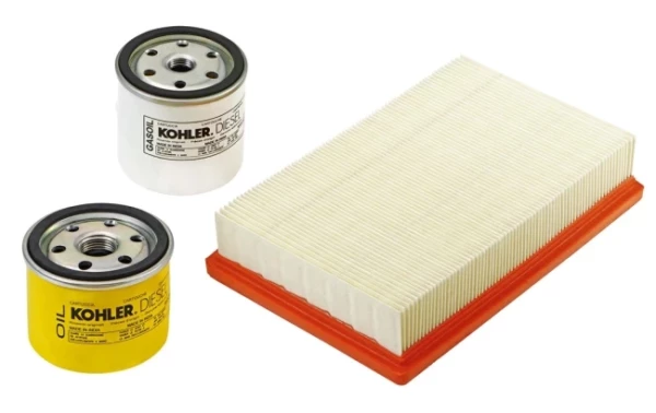 Kit pour l’entretien des moteurs KOHLER KDW702-H C5. Pour groupe électrogène SDMO: DIESEL 10 SILENCE – 12 SILENCE – 15 SILENCE – 16 SILENCE comprenant filtre à huile, filtre à carburant et filtre à air.