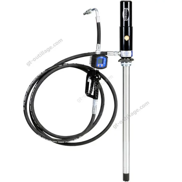 L’utilisation d’une pompe à huile pneumatique nécessite certaines précautions qui assureront le bon fonctionnement du matériel et sa fabilité dans le temps . Débrancher le raccord rapide d’alimentation d’air après utilisation. Installer un fltre à air pour protéger le moteur pneumatique contre la condensation. Installer un régulateur d’air pour ne pas dépasser les pressions d’alimentation d’air prescrites (5 à 8 bars). Vérifer régulièrement l’état du flexible de sortie de d’huile Pompe à huile pneumatique 3:1 avec canne d’aspiration et clapet. Bonde pour adaptation sur fût/tonnelet . Pistolet de distribution d’huile avec bec anti-goutte . Compteur digital . 4 mètres de flexible haute pression 1/2 » . Installation sur tonnelet de 60 Litres. Canne : 730 Flexible : 4 mètres Pression de service (bar) : 18 (air 6 bar) Utilisation : Tonnelet 60 Litres Débit : 20 l/min Liquide : Huiles Pompe : 975830 Pression max : 30 Bar Poids : 9 Kg