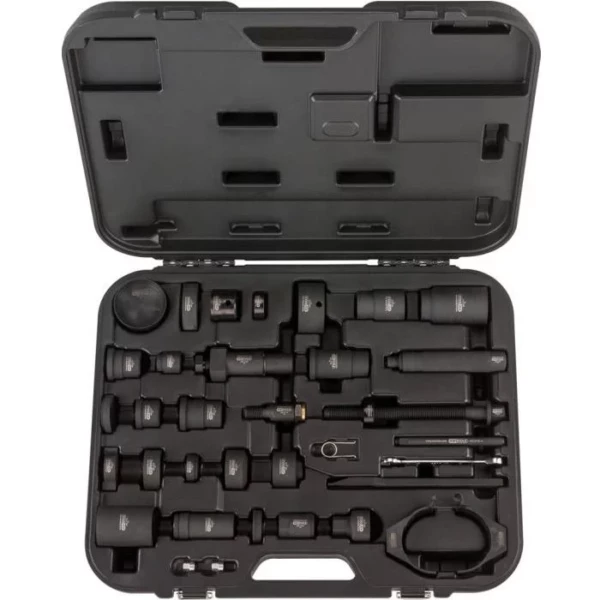 Pour la réparation professionnelle des étriers de freins. Pour le remplacement du soufflet, du palier d’étrier et du joint interne du soufflet. Mise en place manuelle sûre et simple Grande précision, gain de temps, coffret robuste en matière plastique. Pièces dans le set : 36 pièces Matière : Outil en alliage spécial Poids : 13,00 kg Utilisation : Knorr (SB, SN et SK), Wabco (PAN 19-1 et PAN 22-1), SAF (SBS2220 H0)