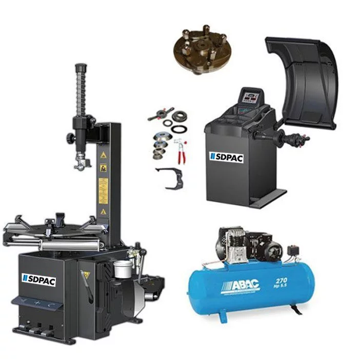 Kit pour garage composé d’une équilibreuse de roues 220V , d’une machine démonte pneus 380V ou (220V en option) et d’un compresseur de 270 litres. Ensemble complet. Matériels de grandes marques et de bon niveau. Idéal pour le démarrage d’une activité de garagiste automobile.