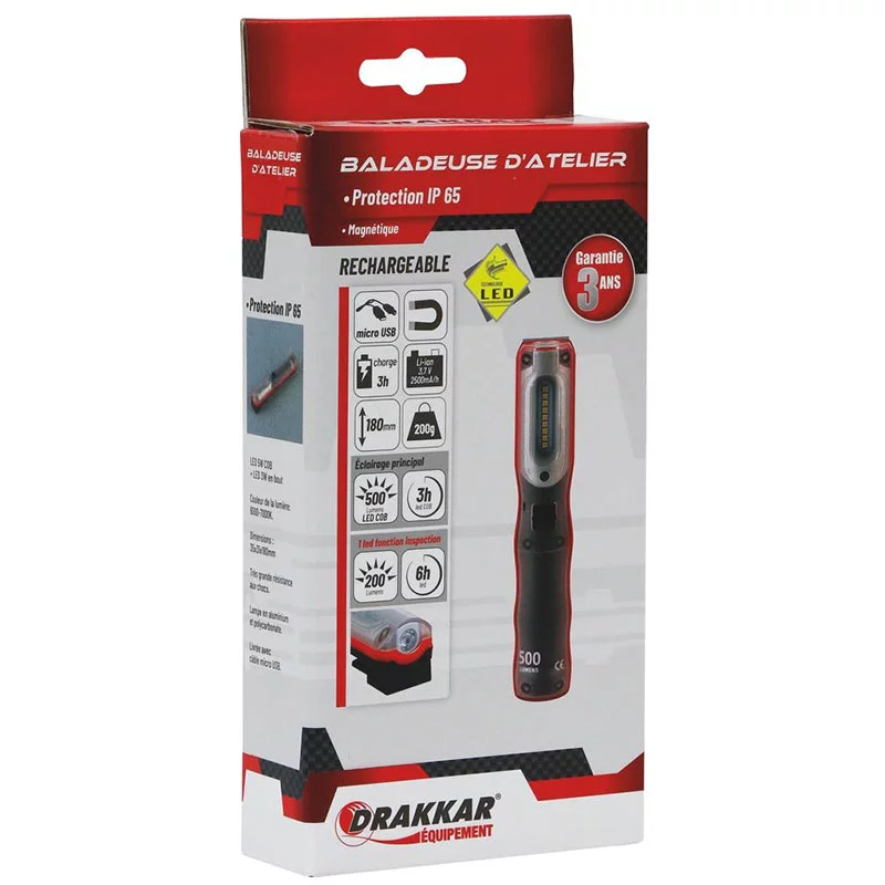 La lampe de poche LED 500 lumens rechargeable DRAKKAR offre un éclairage puissant et fiable pour de nombreuses situations. Elle accompagne aussi bien les professionnels que les particuliers. De plus, son format compact permet de la transporter facilement. Ainsi, vous gardez toujours une source de lumière efficace à portée de main.